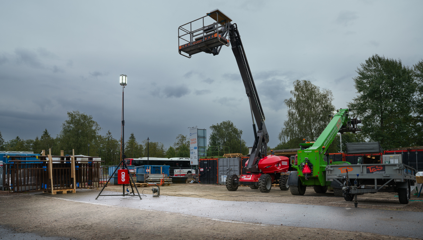 Et kraftig og robust bærbart stativ, 2–4 m med sveiv med max høyde 3,7 meter.